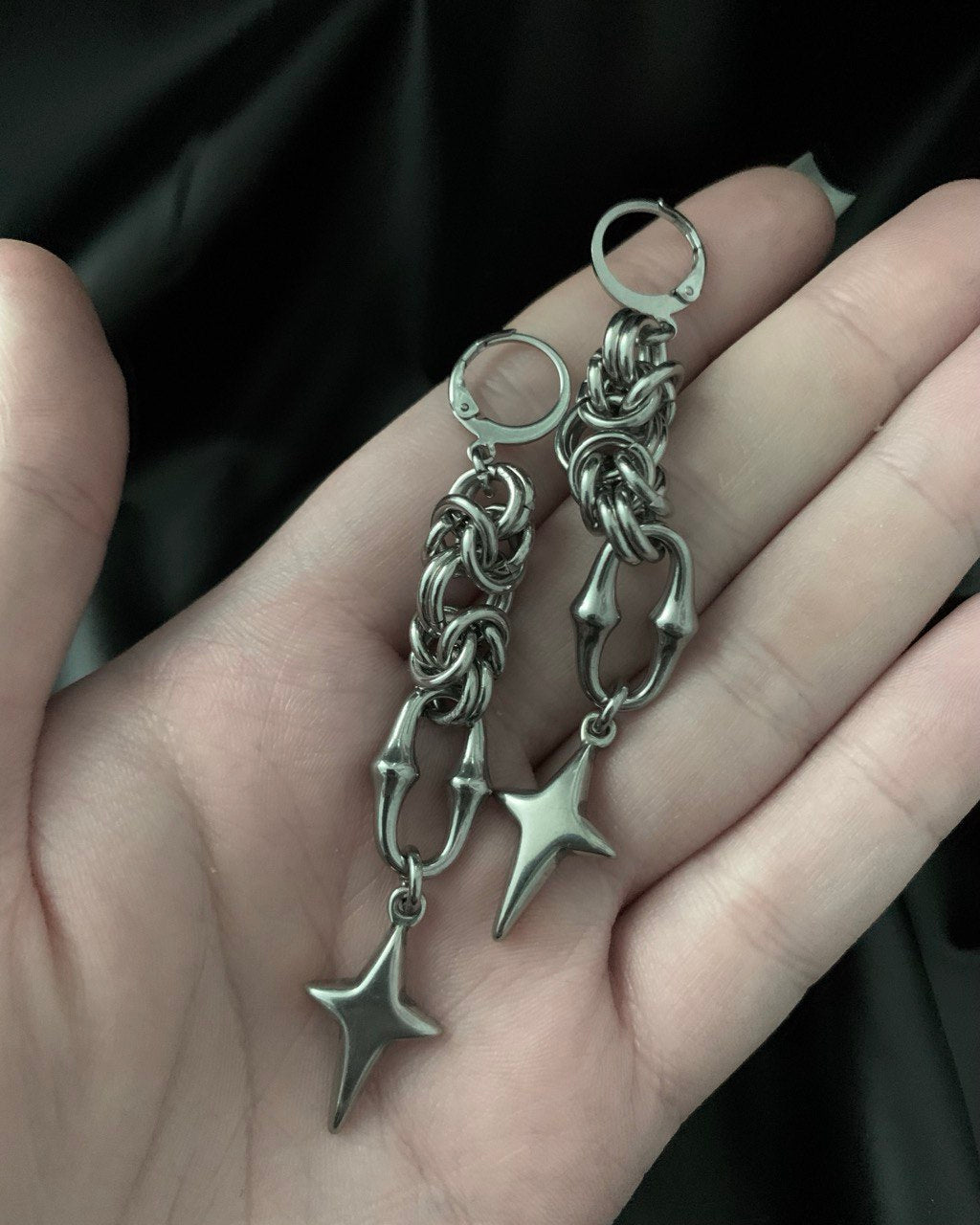 I OFFER FIVE DIFFERENT LOCK TYPES, ALL MADE FROM STAINLESS STEEL AND SUITABLE FOR STANDARD PIERCED EARS. FOR STRETCHED EARS, YOU CAN CHOOSE FROM LEVERBACKS, CLICKERS, OR HOOPS BASED ON YOUR PREFERENCES AND THE REQUIRED INNER DIAMETER.